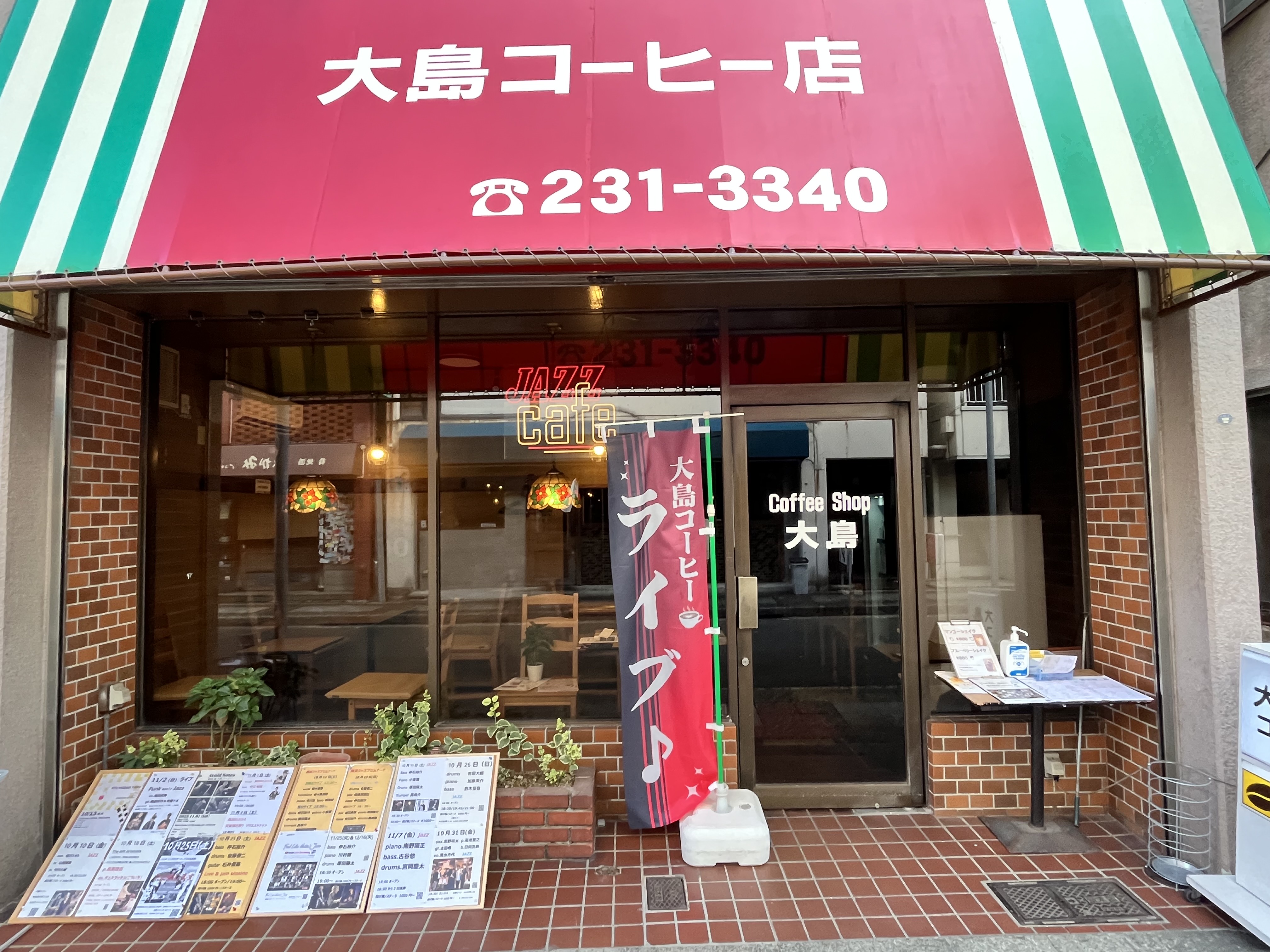 ABOUT MENU LIVE SCHEDULE 2025年10月31日 (金)OPEN: 19:00奥野裕太 ジャズ2025年11月01日 (土)OPEN: 18:00島田のぶひろ 洋楽2025年11月01日 (土)OPEN: 12:30Avoid Note Live at 大島コーヒー 【 詳しく見る 】 ACCESS 住所:神奈川県横浜市中区宮川町2-33 電話番号:045-231-3340 営業時間:9:00 ~ 18:00 ※ 閉店時間はライブ演奏などで変わります。 定休日:水曜 ※ 臨時休業などはX、Instagramでお知らせしています。 SOCIAL ぜひ、フォロー&いいね お願いします ※ Xはログインしていないと表示されないことがあります